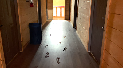 It was a mud pit out there, so we hosed off before going back into the lodge.